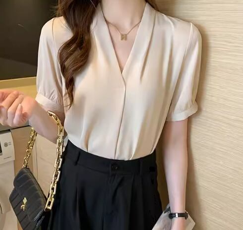 レディース トップス シャツ プルオーバー ミドル丈 半袖 Vネック シフォン 大人可愛い きれいめ シンプル カジュアル 上品 おしゃれ こなれ感 ルーズ クール エレガント 知的 清潔感 ハンサム シック 高級感 オフィスカジュアル スタイリッシュ 涼しげ 柔らかい 無地 夏 オフィス ビジネス OL 通勤 デート お出かけ 体型カバー 普段使い 着回し 清楚 S M L XL ゆったり ホワイト アプリコット
