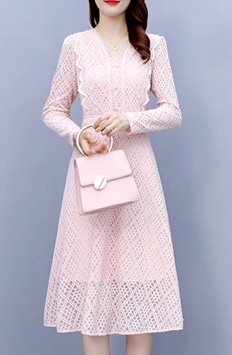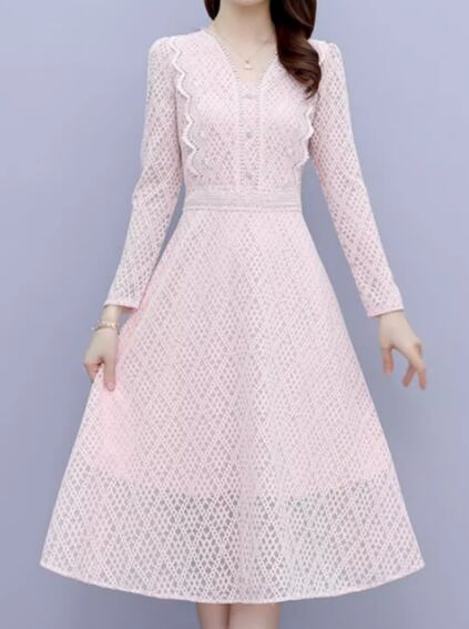 知的でエレガントな雰囲気のブラック、キュートでラブリーな雰囲気のピンク、二種類展開のレースドレス。