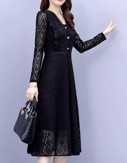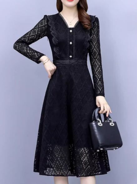 レディース ワンピース ドレス 膝丈 ミドル丈 長袖 Vネック フェミニン レース ウエストマーク かわいい 大人可愛い きれいめ 上品 おしゃれ レトロ ガーリー エレガント ラブリー キュート クラシカル シック 高級感 華やか 優しい 穏やか フェアリー 春 秋 デート お出かけ パーティー イベント 普段使い 清楚 M L XL
