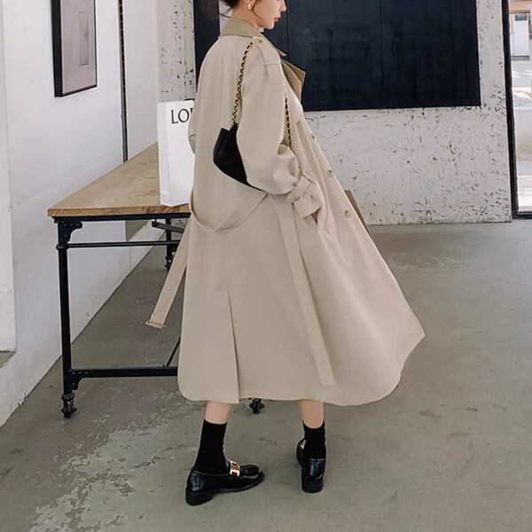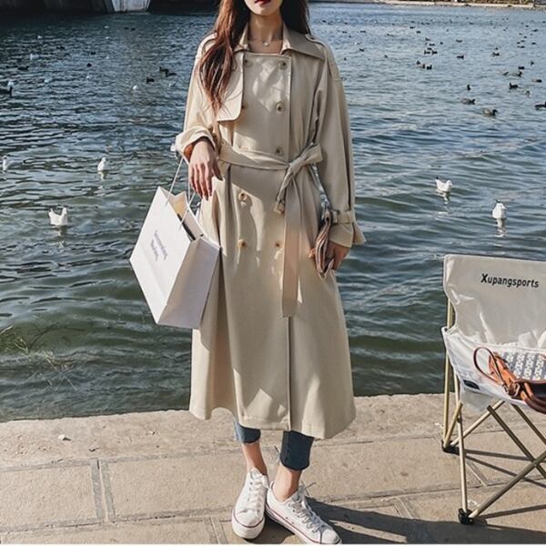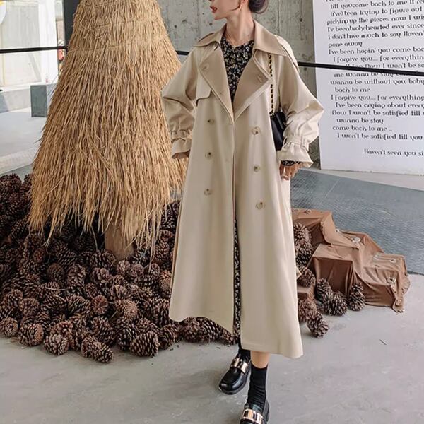 レディース ドレーピート・レンチコート プルオーバー ジャケット コート 上着 トレンチ テーラードジャケット ロング 長袖 ラグラン Vネック ストレート ベルト ポケット ボタン バイカラー 薄手 大人可愛い カジュアル 上品 エレガント フォーマル オフィスカジュアル 無地 春 秋 冬 20代 30代 ビジネス 通勤 イベント ガーデン ショッピング カフェ 韓国 トレンド オーバーサイズ