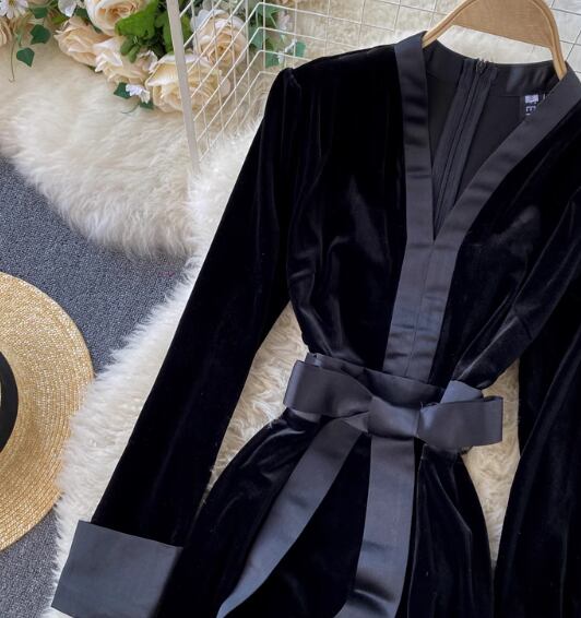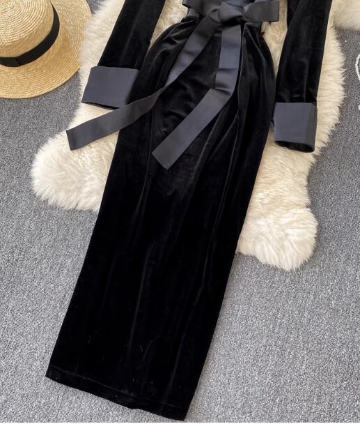 レディース ワンピース ロング マキシ 長袖 Vネック 切り替え ベルト ウエストマーク ウエストリボン スリット バックスリット ベロア かわいい きれいめ 上品 おしゃれ レトロ エスニック こなれ感 個性的 クール モード系 エレガント 都会的 豪華 セレブリティ セクシー ポップ 無地 秋 冬 二次会 披露宴 パーティー イベント 韓国 オルチャン コーデ 体型カバー 美脚 脚長 着回し モテ 清楚 S M L XL 2XL 3XL 黒 ブラック