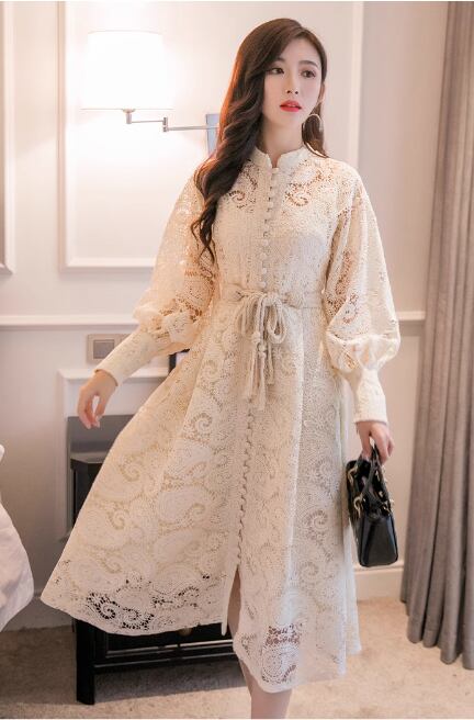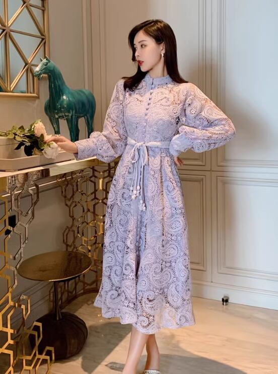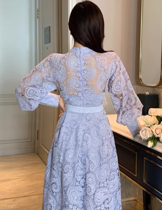 レディース ワンピース 膝下 ロング マキシ 9分丈 長袖 ボリューム袖 フレア セミフレア Aライン 切り替え レース 刺繍 ベルト ウエストマーク ウエストリボン 薄手 かわいい 大人可愛い 上品 おしゃれ ガーリー クール モード系 エレガント 主役級 存在感 都会的 セレブリティ 高級感 オールシーズン 二次会 披露宴 ロングシーズン シーズンレス 10代 20代 30代 パーティー イベント 美脚 脚長 S M L