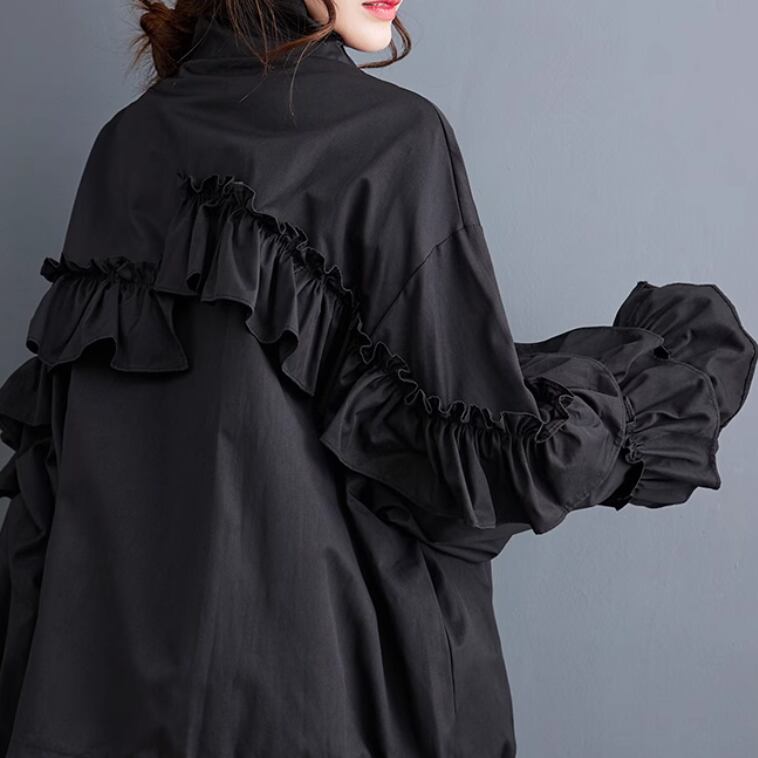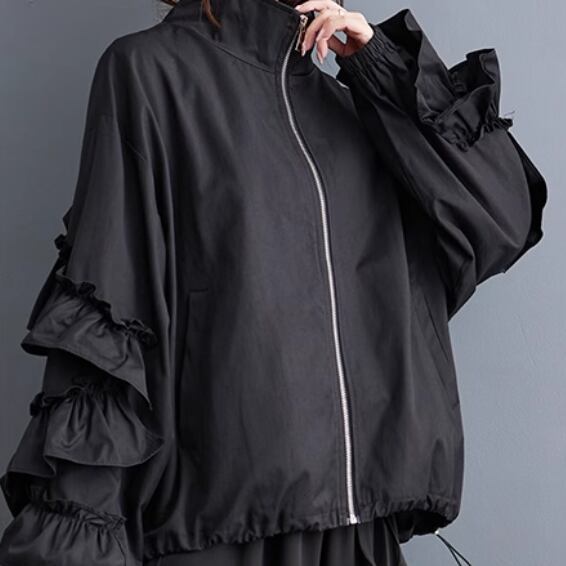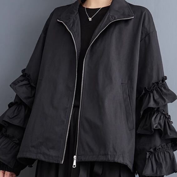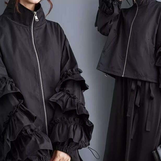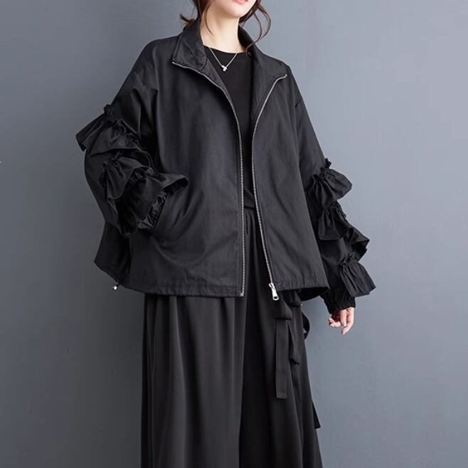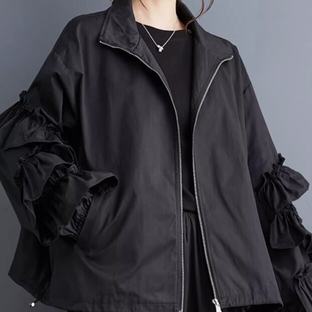 レディース ジャケット コート ブルゾン アウター 上着 前開き ウィンドブレーカー ミディアム 長袖 ボリューム袖 萌袖 フリル袖 襟付き オーバーサイズ フェミニン フリル もこもこ ファスナー ポケット 伸縮性 かわいい 大人可愛い きれいめ シンプル カジュアル 上品 おしゃれ かっこいい レトロ こなれ感 ラフ ガーリー ルーズ 個性的 エレガント 主役級 存在感 とろみ感 抜け感 ラブリー キュート ロマンティック 無地 秋 冬 お出かけ アウトドア 休日 お花見 暖かい ゆったり ゆる