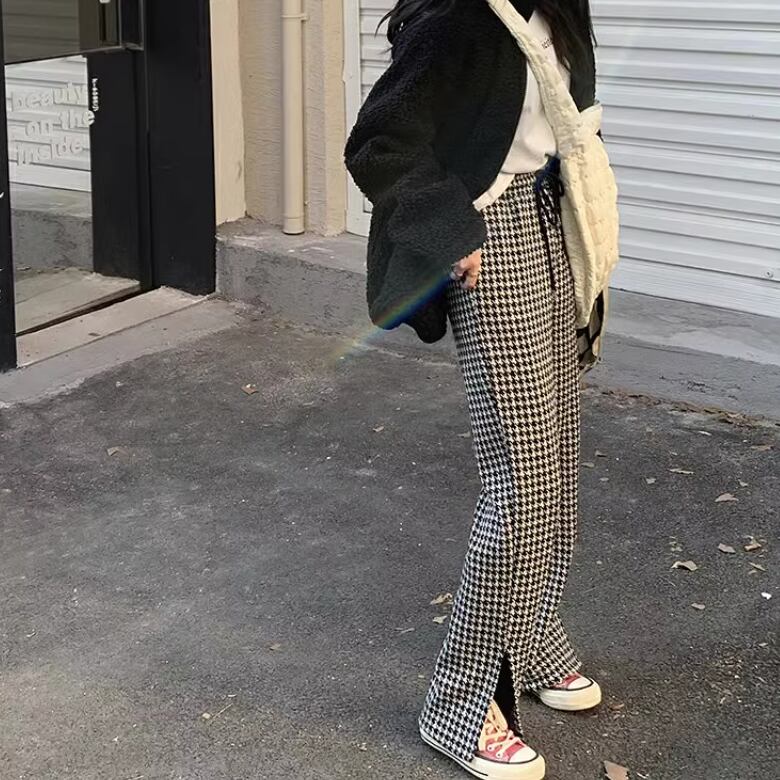 レディース パンツ ボトムス ロングパンツ ワイドパンツ ロング 丈長 ワイド スリット サイドスリット ハイウエスト 伸縮性 かわいい 大人可愛い きれいめ シンプル カジュアル 上品 おしゃれ かっこいい レトロ こなれ感 ラフ ルーズ 個性的 クール モード系 エレガント モダン 主役級 存在感 とろみ感 抜け感 ラブリー キュート ベーシック アクティブ ナチュラル チェック 格子柄 千鳥格子 デート お出かけ 公園 休日 お花見 カフェ コーデ 楽ちん 美脚 脚長 普段使い モテ ゆる ブラック