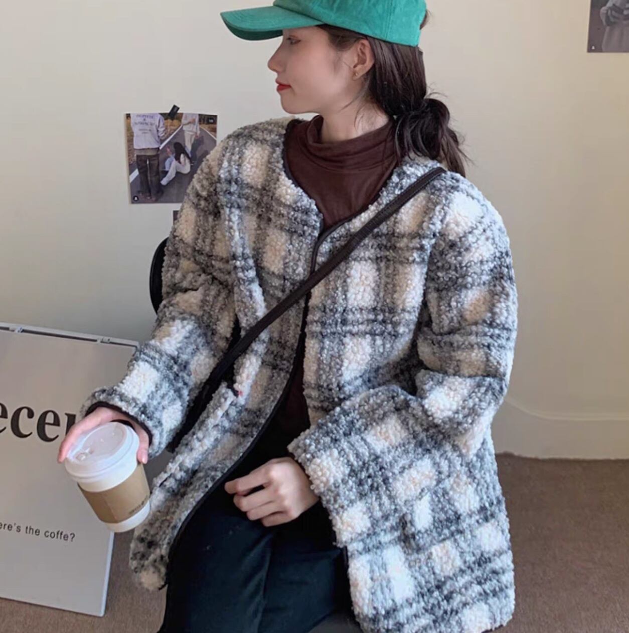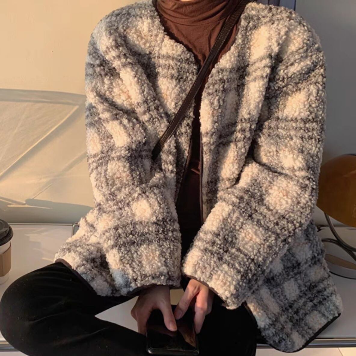 レディース ブルゾン アウター 上着 前開き ノーカラージャケット ボアジャケット 長袖 Uネック ラウンドネック ストリート フリース かわいい 大人可愛い シンプル カジュアル おしゃれ かっこいい レトロ こなれ感 ラフ メンズライク マニッシュ ボーイッシュ スポーティー 抜け感 アメリカン プレッピー カントリー アクティブ ナチュラル チェック 格子柄 秋 冬 アウトドア キャンプ 休日 重ね着 楽ちん 暖かい 防寒 体型カバー 普段使い 着回し レイヤード 定番 S M L XL ベージュ