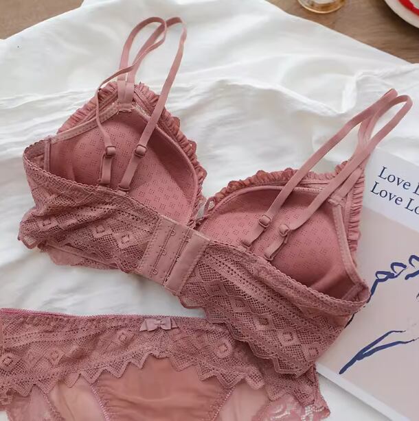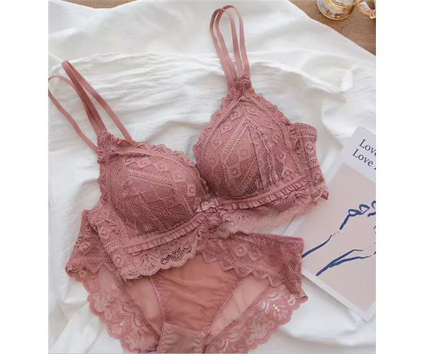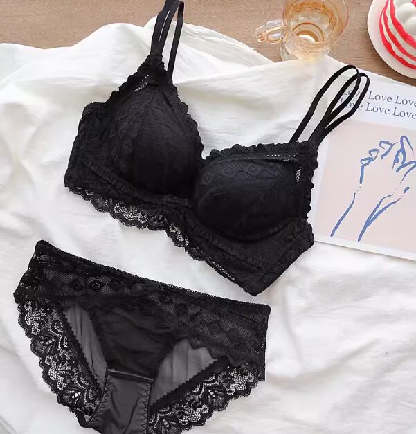 シックなカラーとレースデザインが大人可愛い、ブラ&ショーツのセット。