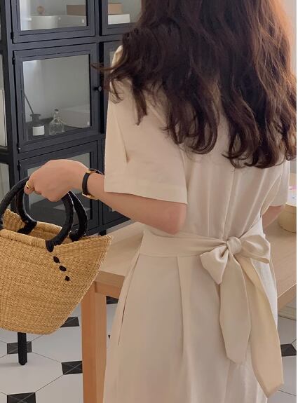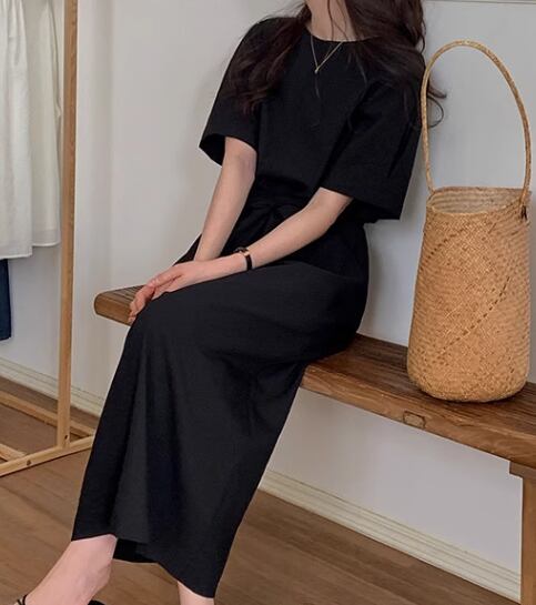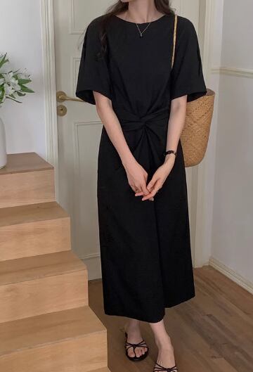 レディース ワンピース プルオーバー ロング 半袖 ラウンドネック ウエストマーク バックリボン 大人可愛い きれいめ シンプル カジュアル 上品 おしゃれ レトロ ラフ ガーリー ルーズ 個性的 ナチュラル リラックス シック 高級感 芸術的 アーティスティック スタイリッシュ 優しい 穏やか 無地 夏 デート お出かけ 楽ちん 体型カバー 普段使い 清楚 ゆったり フリーサイズ ブラック アプリコット