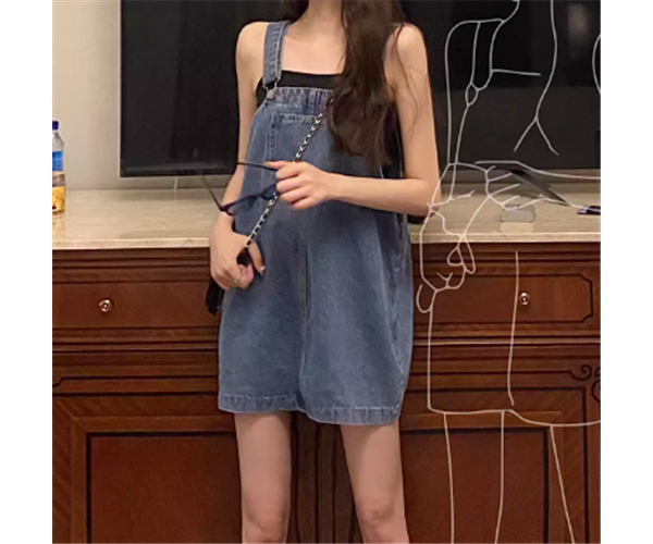 レディース ワンピース プルオーバー デニム デニムワンピース ミニ ショート 袖なし ノースリーブ スクエアネック ハイウエスト サスペンダー ブルーデニム かわいい シンプル カジュアル おしゃれ レトロ ラフ キュート アクティブ セクシー シック スタイリッシュ 無地 秋 10代 20代 学生 デート お出かけ 重ね着 普段使い 着回し レイヤード フリーサイズ ブルー