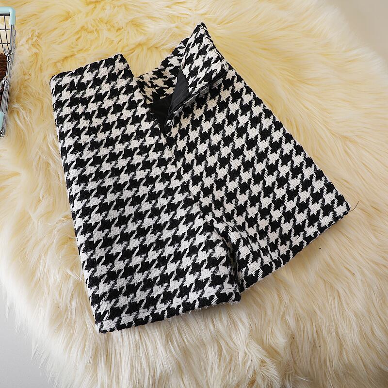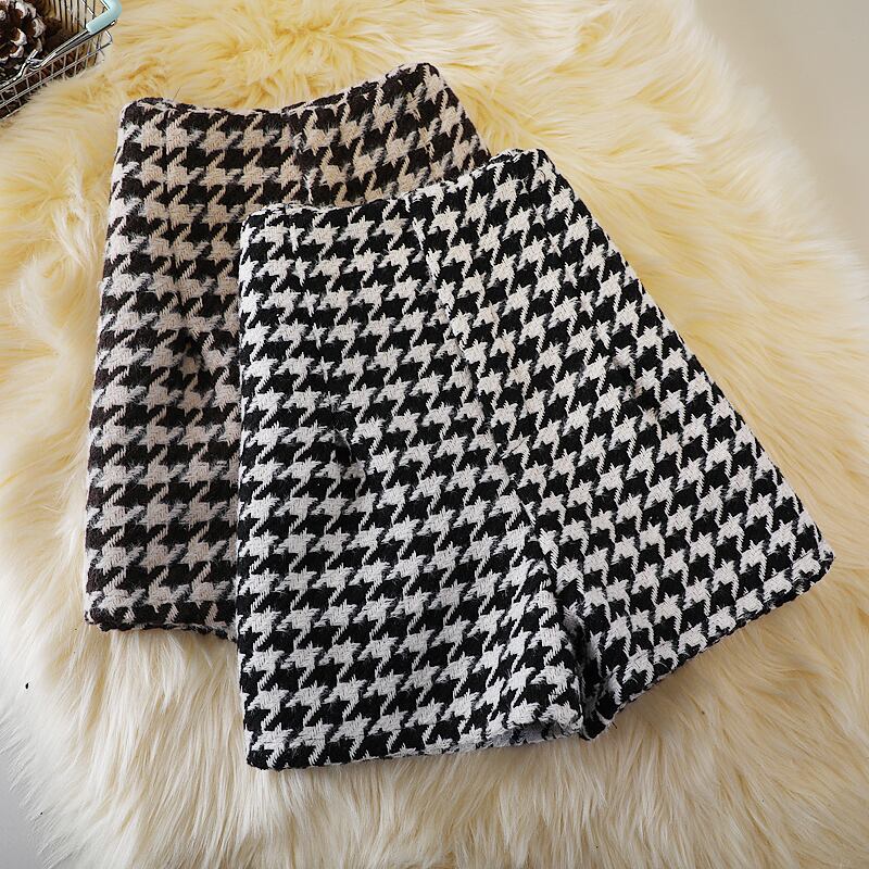 レディース パンツ ボトムス ショートパンツ 膝上 ワイド Aライン フェミニン ハイウエスト ヴィンテージ バイカラー 中厚手 大人可愛い きれいめ シンプル カジュアル 上品 こなれ感 ガーリー エレガント 主役級 抜け感 都会的 クラシカル ナチュラル 千鳥格子 秋 冬 ママ 学校 通学 デート お出かけ 旅行 女子会 休日 合コン モノトーン お揃い オルチャン 暖かい 脚長 普段使い 着回し モテ 清楚 トレンド 流行 インスタ映え 定番 S M L XL 2XL ブラック ブラウン