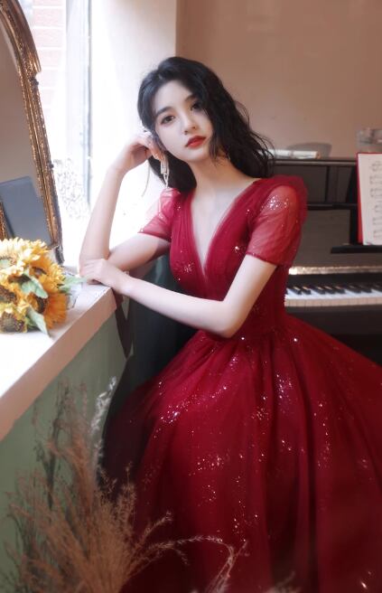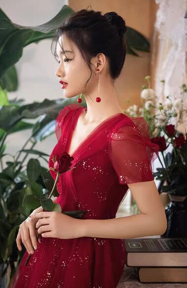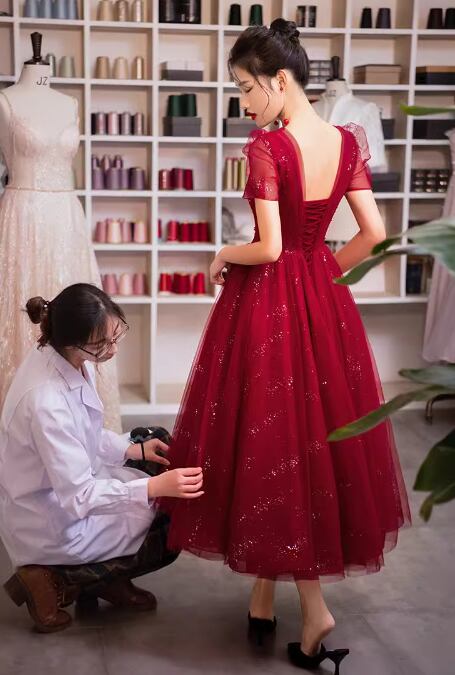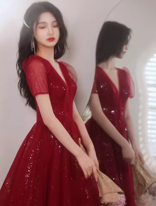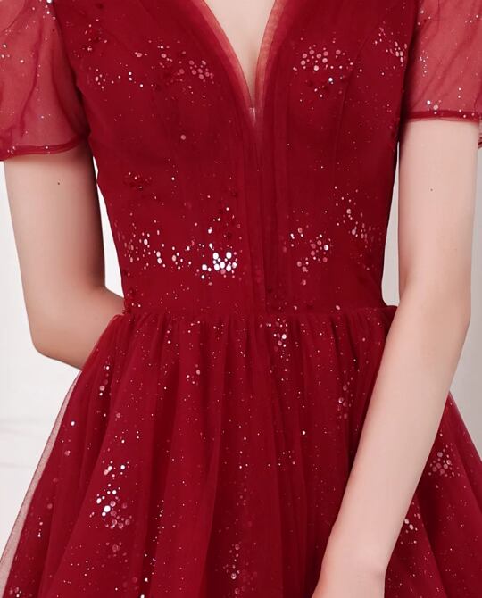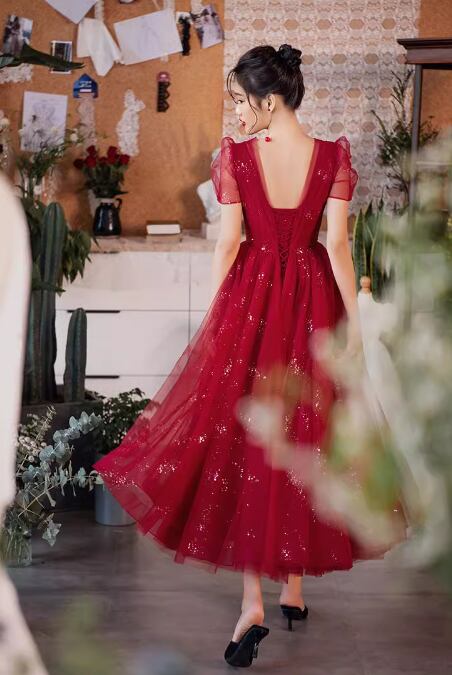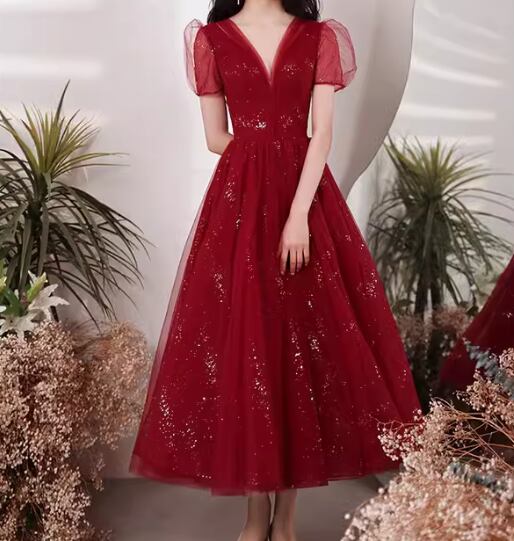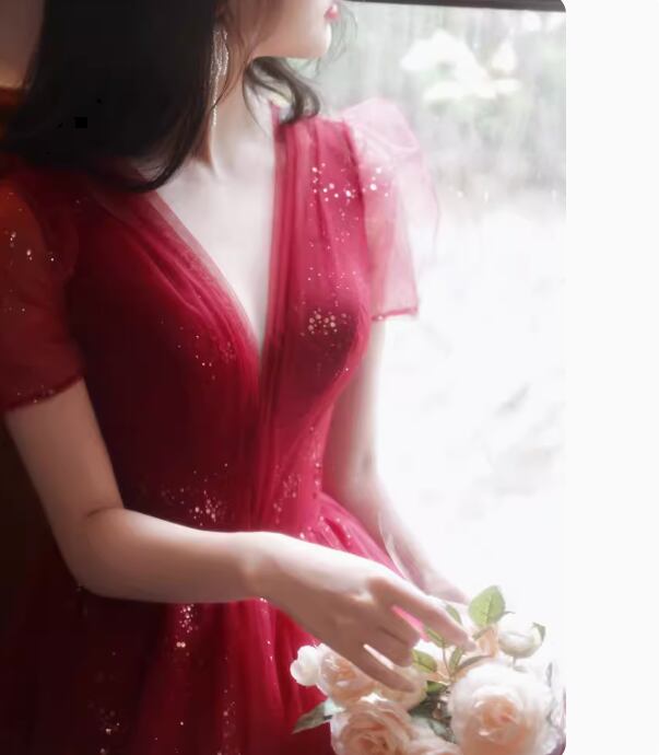 レディース ワンピース ドレス ドレス ロング アンクル丈 半袖 パフスリーブ Vネック 背中開き フェミニン チュール シフォン ハイウエスト 透け感 オーガンジー 薄手 チュール 大人可愛い きれいめ 上品 おしゃれ エレガント 主役級 存在感 ラブリー プリンセス ロマンティック オールシーズン 二次会 披露宴 発表会 母の日 OL 学生 デート イベント リゾート レストラン ホテル 発表会 コンサート モテ インスタ映え XS S M L XL 2XL ワインレッド