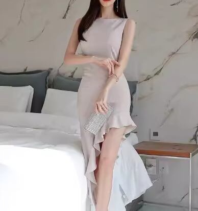 レディース ドレス パーティードレス ナイトドレス パーティー ミニ ショート ミモレ イレギュラー アシンメトリー 不規則 左右非対称 ノースリーブ ラウンドネック タイト スリム 細身 フィッシュテール フリル ファスナー きれいめ シンプル 大人可愛い 上品 おしゃれ かっこいい エレガント 存在感 セクシー シック ラグジュアリー フェミニン こなれ感 無地 ホテル レストラン デート 食事会 会食 夏 S M L XL 小さめ オフホワイト