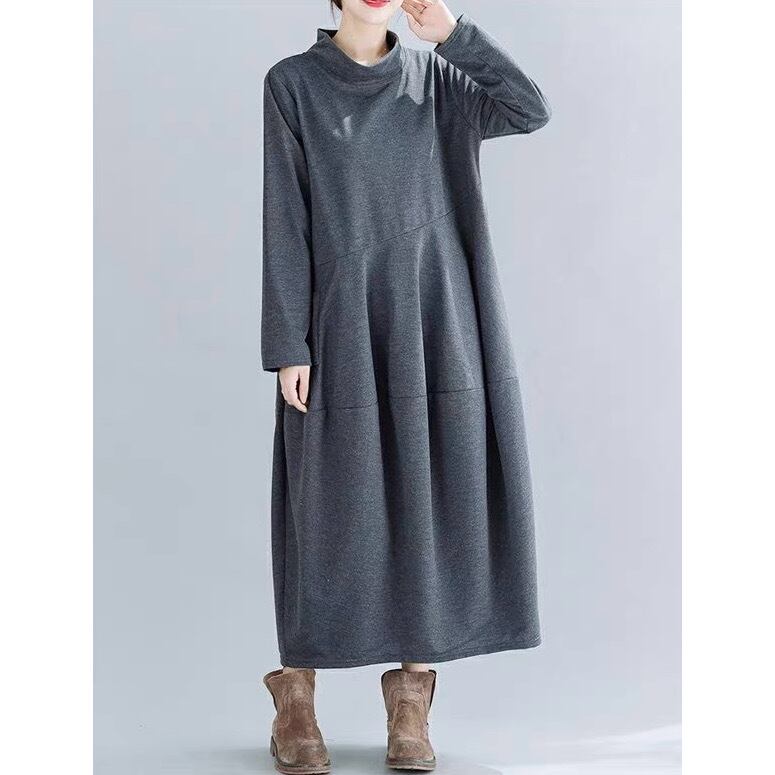 レディース ワンピース プルオーバー ロングワンピース ミモレ ロング 長袖 ハイネック ワイド ポケット 大人可愛い きれいめ シンプル カジュアル おしゃれ こなれ感 ラフ ルーズ クール モード系 モダン 抜け感 ナチュラル 無地 春 秋 ママ マタニティ デート お出かけ 女子会 休日 ショッピング 韓国 オルチャン コーデ 楽ちん 体型カバー 普段使い 着回し スタイル デイリー M L XL 2XL 大きいサイズ ゆったり ゆる 黒 ブラック グレー ミリタリー ネイビー グリーン 大人カラー