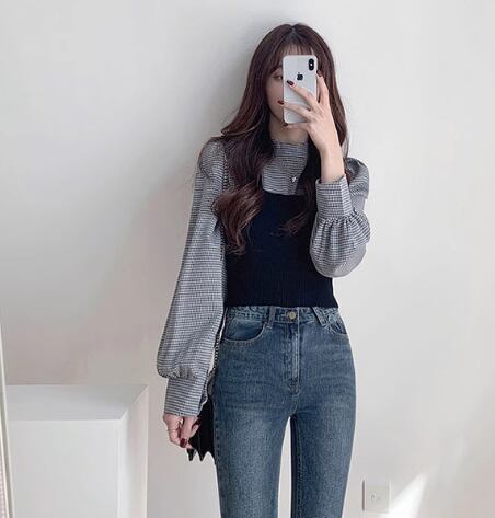 個性的で存在感抜群のアンサンブルが登場!ギンガムチェック柄が可愛らしいブラウスとベストのセットです。