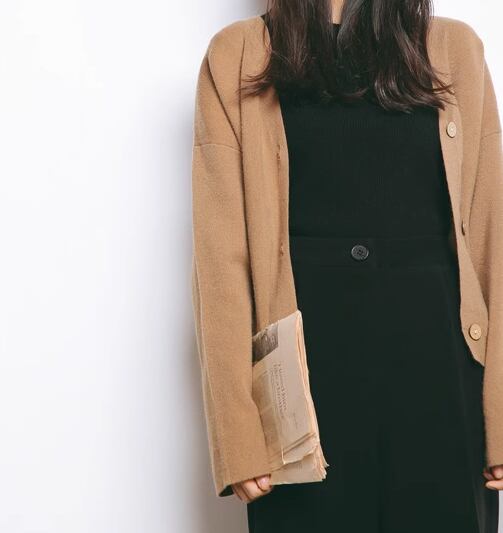 シックなカラーが大人可愛い、オーバーサイズの長袖ニットカーディガン。