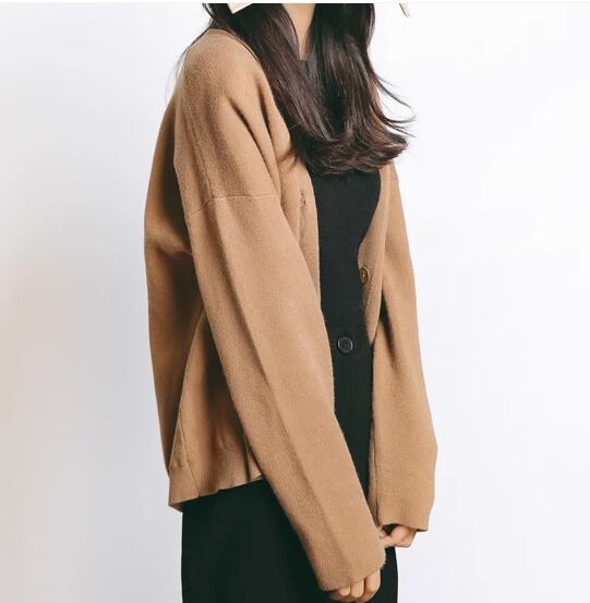 レディース トップス ニット カーディガン 羽織 前開き ショート 長袖 Vネック ボタン 大人可愛い きれいめ シンプル カジュアル 上品 おしゃれ レトロ ボーイッシュ ルーズ クール ベーシック ナチュラル シック 高級感 無地 春 秋 デート お出かけ 重ね着 韓国 普段使い 着回し レイヤード 清楚 トレンド 流行 定番 ゆったり ゆる フリーサイズ 大きめ オーバーサイズ ブラック ブラウン アプリコット