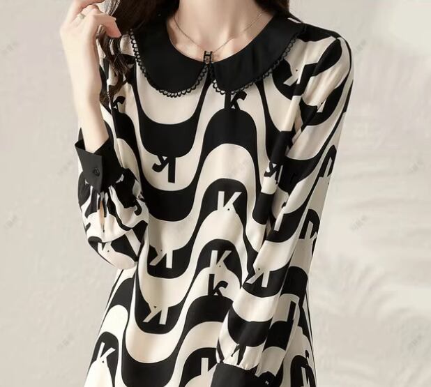 丸襟が女性らしさをプラスしてくれていて可愛いです。