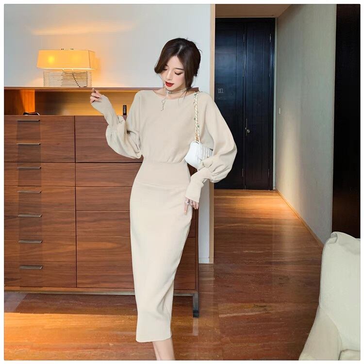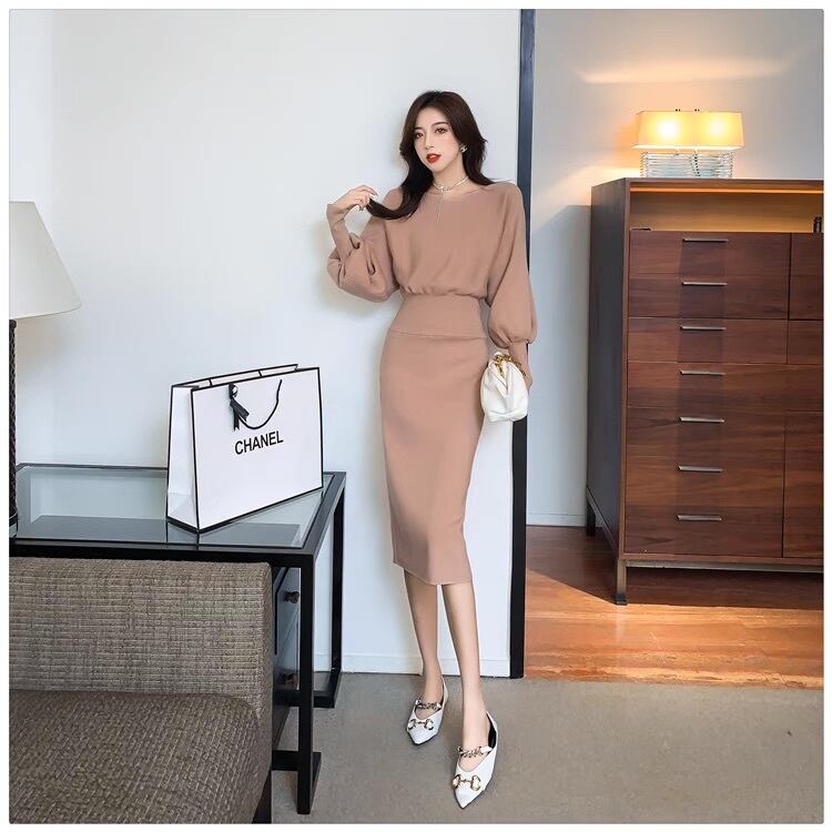 レディース ワンピース ミモレ 長袖 ボリューム袖 バルーン袖 ボートネック タイト スリム 細身 フェミニン ウエストマーク ニット かわいい 大人可愛い きれいめ シンプル 上品 おしゃれ ラフ ガーリー エレガント モダン 抜け感 キュート ベーシック ロマンティック ナチュラル 無地 秋 冬 授業参観 デート お出かけ イベント 女子会 休日 合コン コンパ カフェ 婚活 普段使い 着回し モテ 清楚 トレンド 流行 インスタ映え S M L 黒 ブラック ピンク アプリコット ベーシックカラー