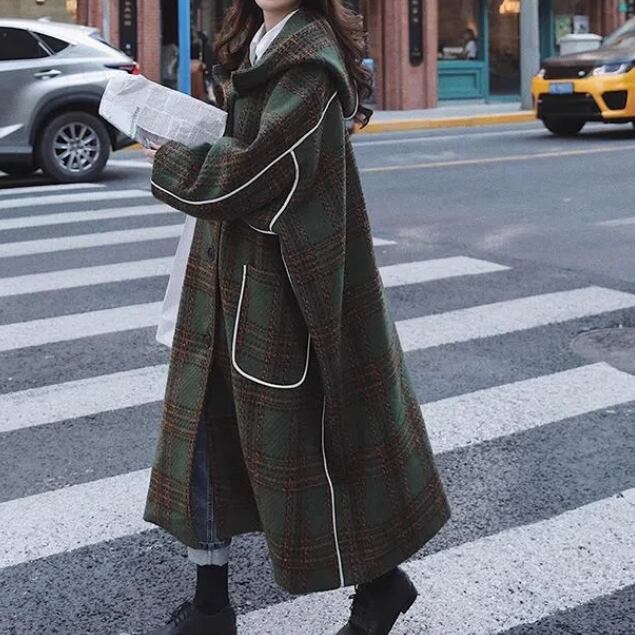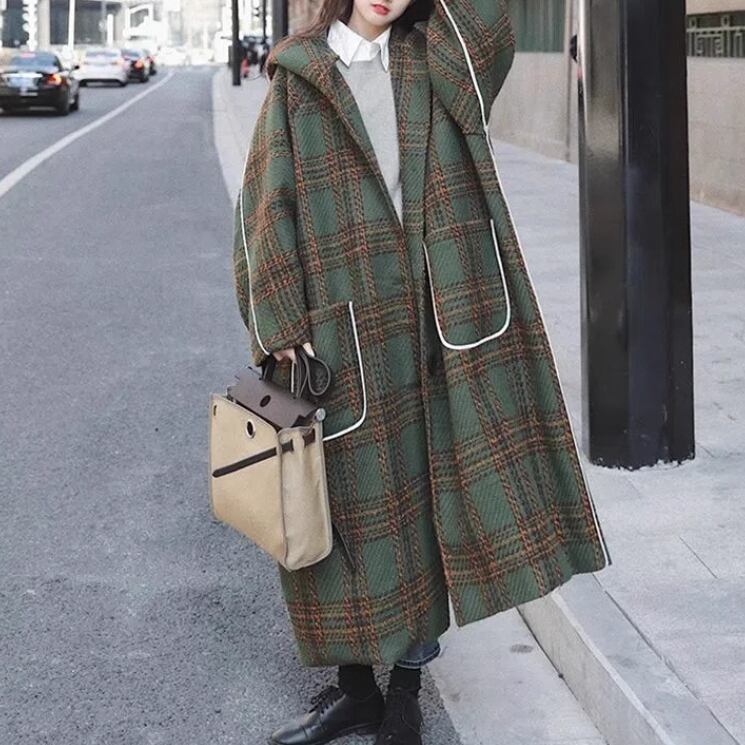 レディース ジャケット パーカー コート アウター ウール 羽織 前開き ウールロングコート ロングコート ロング 長袖 ボリューム袖 萌袖 フード ワイド オーバーサイズ もこもこ ふっくら ポケット 伸縮性 かわいい 大人可愛い きれいめ シンプル カジュアル 上品 おしゃれ かっこいい レトロ こなれ感 ラフ ルーズ 個性的 主役級 存在感 抜け感 アクティブ チェック 秋 冬 デート お出かけ アウトドア 公園 休日 カフェ コーデ 楽ちん 暖かい 防寒 体型カバー 普段使い ゆったり ゆる