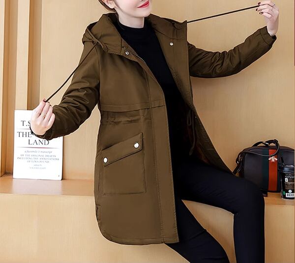 レディース トップス ジャケット プルオーバー コート ミリタリーコート ウィンドブレーカー アウター ミディアム カジュアルジャケット マウンテンパーカー ミドル丈 長袖 フード スリム ストレート スリムフィット ポケット ドロスト 中厚手 綿 ベルベット 大人可愛い カジュアル 上品 ルーズ オフィスカジュアル 無地 オーバーサイズ 春 秋 冬 20代 30代 40代 OL 通勤 お出かけ アウトドア 休日 ガーデン ショッピング カフェ 韓国