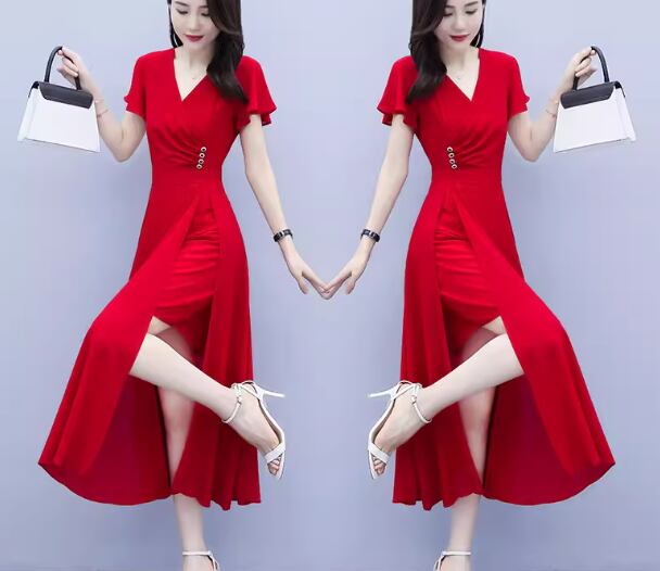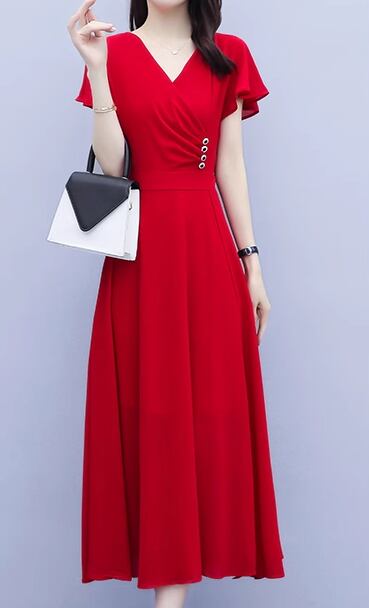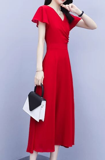 レディース ワンピース ドレス ロング 半袖 Vネック カシュクール シフォン ウエストマーク スリット 異国風 ボタン 大人可愛い きれいめ シンプル カジュアル 上品 おしゃれ かっこいい こなれ感 個性的 クール エレガント 抜け感 ラグジュアリー セクシー シック 高級感 スタイリッシュ 無地 夏 デート お出かけ パーティー イベント 韓国 普段使い M L XL ブラック レッド