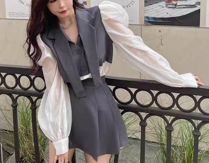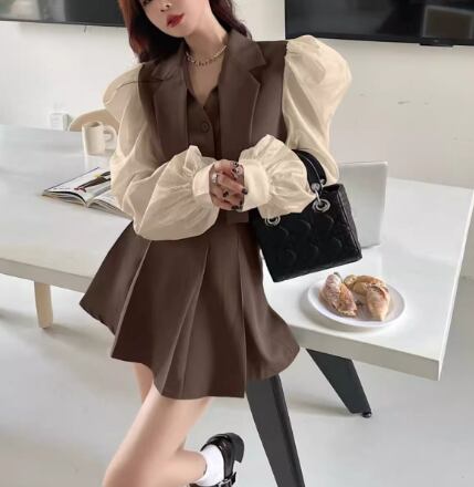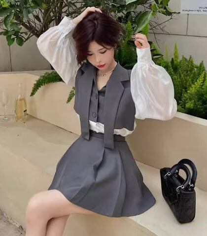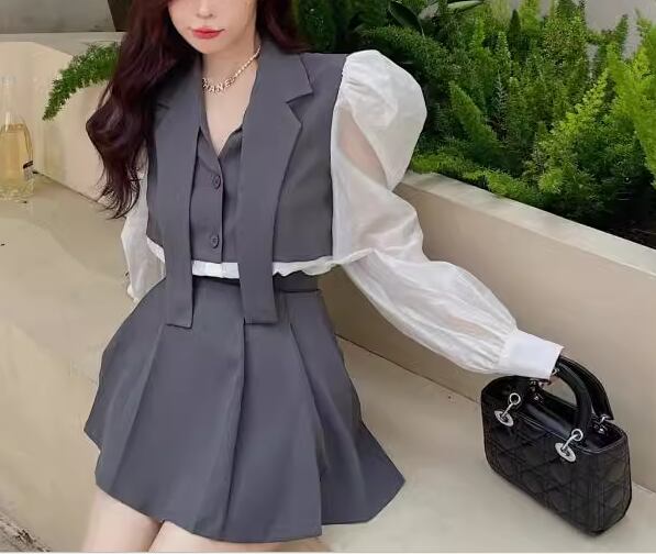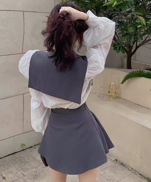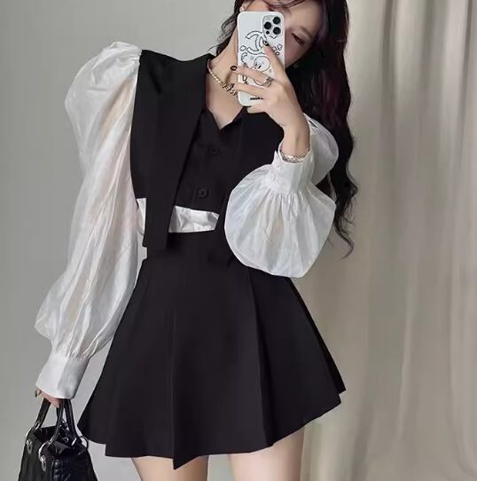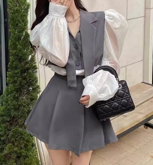 二点セット 上下セット ツーピース スーツ風 レディース スカート トップス シャツ セットアップ ショートスカート プリーツスカート ミニスカート 長袖 ボリューム袖 襟付き かわいい 大人可愛い きれいめ カジュアル 上品 おしゃれ かっこいい こなれ感 個性的 エレガント 存在感 キュート ラグジュアリー セクシー ハンサム シック 高級感 スタイリッシュ 無地 秋 10代 20代 学生 デート お出かけ 普段使い 着回し モテ トレンド 流行 S M L ブラック グレー カーキ