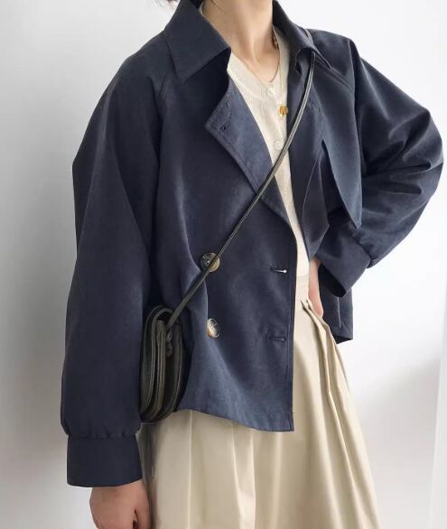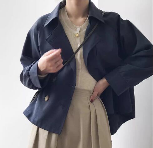 レディース コート アウター 上着 トレンチ ショート 長袖 襟付き ベルト ボタン 薄手 大人可愛い きれいめ シンプル カジュアル 上品 おしゃれ かっこいい レトロ ボーイッシュ ルーズ 個性的 クール エレガント クラシカル 知的 ハンサム シック 高級感 スタイリッシュ ブリティッシュスタイル 無地 秋 デート お出かけ 体型カバー 普段使い 着回し M L ゆったり カーキ ネイビー