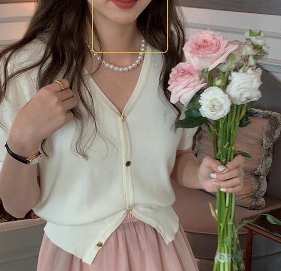 上品で落ち着いた色味が大人可愛い、半袖のニットカーディガン。