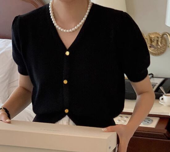 レディース ニット カーディガン ショート 半袖 パフスリーブ Vネック 前開き ボタン 大人可愛い きれいめ シンプル カジュアル 上品 おしゃれ レトロ ラフ ボーイッシュ ルーズ クール エレガント ベーシック ナチュラル シック 涼しげ 無地 夏 デート お出かけ 重ね着 普段使い 着回し レイヤード 清楚 トレンド 流行 S M L XL ゆったり ホワイト ブラック イエロー ブルー