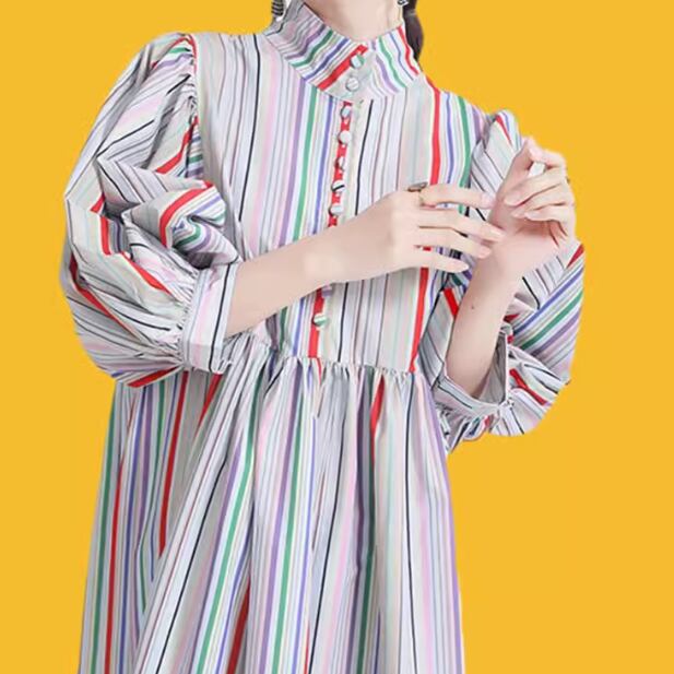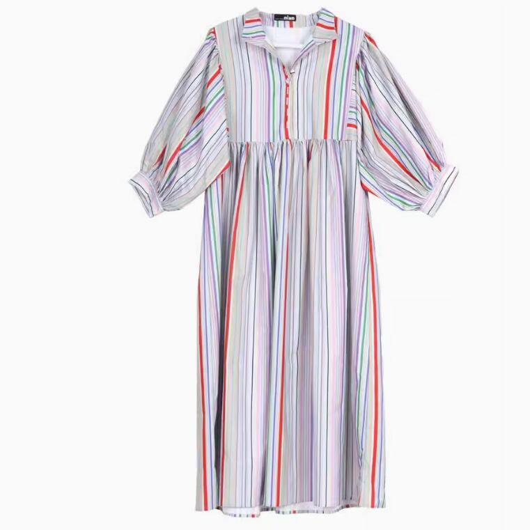 レディース スカート ワンピース ドレス ロングスカート ミモレ 半袖 5分袖 襟付き スタンドカラー ワイド ハイウエスト ボタン 薄手 かわいい 大人可愛い きれいめ シンプル カジュアル 上品 おしゃれ レトロ こなれ感 ラフ ルーズ 個性的 エレガント 主役級 存在感 とろみ感 抜け感 ラブリー キュート ベーシック ロマンティック ナチュラル ストライプ 春 夏 デート お出かけ リゾート 女子会 休日 バカンス カフェ コーデ 楽ちん 体型カバー 普段使い 清楚 ゆったり ゆる フリーサイズ