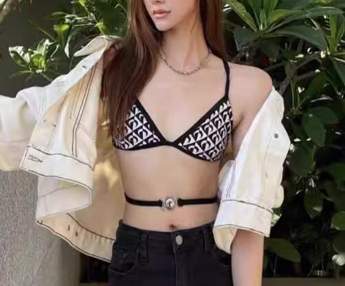 水着 ビキニ レディース 三角ビキニ セパレート ナイロン セット ツーピース 上下セット 大人可愛い カジュアル ゴージャス 華やか 大人っぽい おしゃれ お洒落 存在感 個性的 クール スタイリッシュ モダン かっこいい セクシー プリント リゾート 旅行 温泉 プール 夏 海 こなれ感 M L Aカップ Bカップ 貧乳 小さい胸用 小胸さん用 ブラック