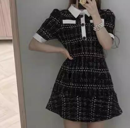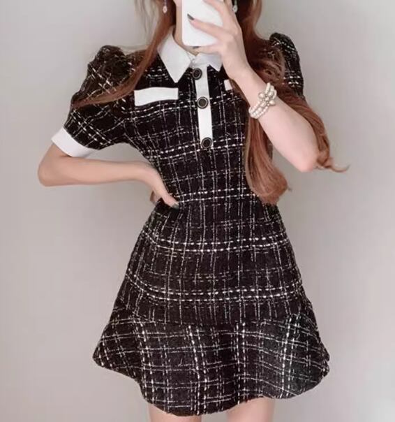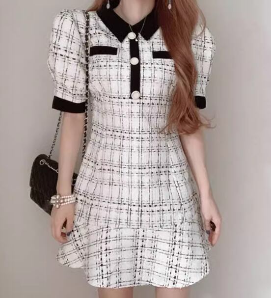 レディース ワンピース プルオーバー ドレス ミニ ショート 膝上 半袖 パフスリーブ 襟付き ポロカラー タイト スリム 細身 Aライン フリル ハイウエスト ボタン かわいい 大人可愛い きれいめ シンプル 上品 おしゃれ レトロ ガーリー エレガント キュート ラグジュアリー セクシー シック 高級感 チェック 夏 10代 20代 学生 デート お出かけ 韓国 普段使い モテ トレンド 流行 フリーサイズ 小さめ ホワイト ブラック