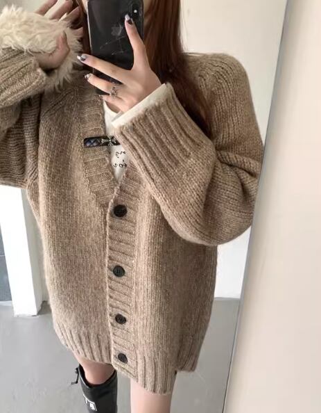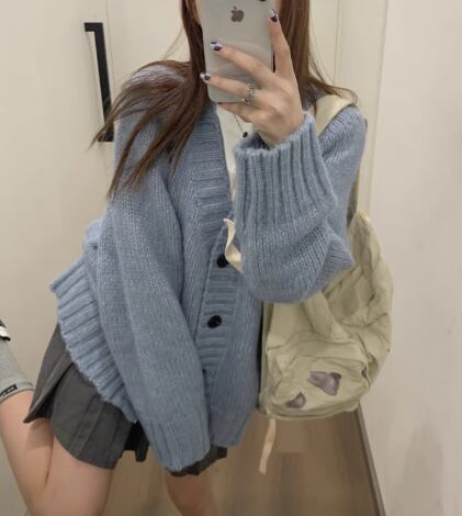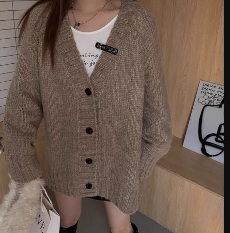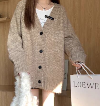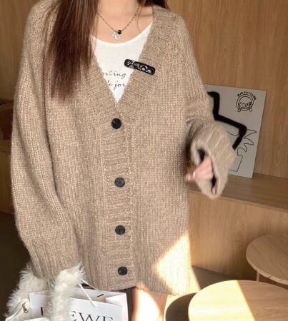 レディース トップス ニット カーディガン ミドル丈 長袖 Vネック ボタン かわいい 大人可愛い きれいめ シンプル カジュアル 上品 おしゃれ レトロ ラフ ボーイッシュ ルーズ クール キュート ナチュラル シック 高級感 無地 春 デート お出かけ 重ね着 体型カバー 普段使い 着回し レイヤード モテ ゆったり フリーサイズ ブラウン ブルー