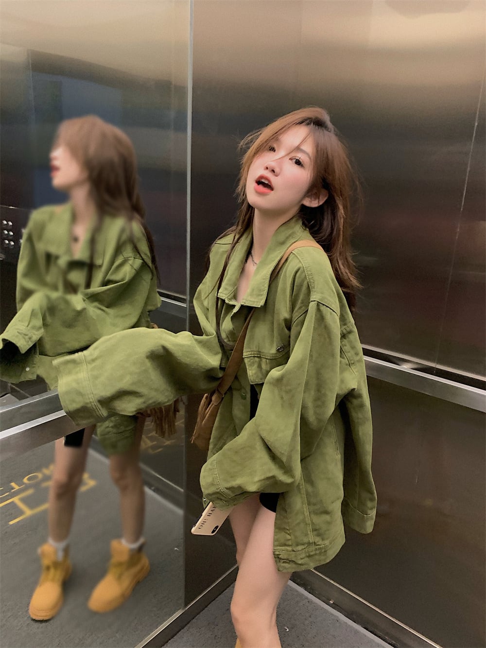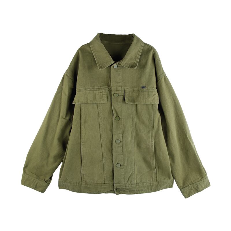 サイズ豊富 ルーズフィット レディース ジャケット アウター 上着 デニムジャケット Gジャン ミディアム丈 チュニック丈 長袖 ドロップショルダー 萌袖 襟付き オーバーサイズ ポケット 前開き シンプル カジュアル 上品 おしゃれ かっこいい こなれ感 ボーイッシュ ルーズ 無地 春 秋 ママ マタニティ 女の子 学生 学校 通学 デート お出かけ 旅行 公園 女子会 休日 体型カバー 普段使い 着回し S M L XL 2XL 3XL 4XL 5XL 大きいサイズ ゆったり ゆる 緑 グリーン