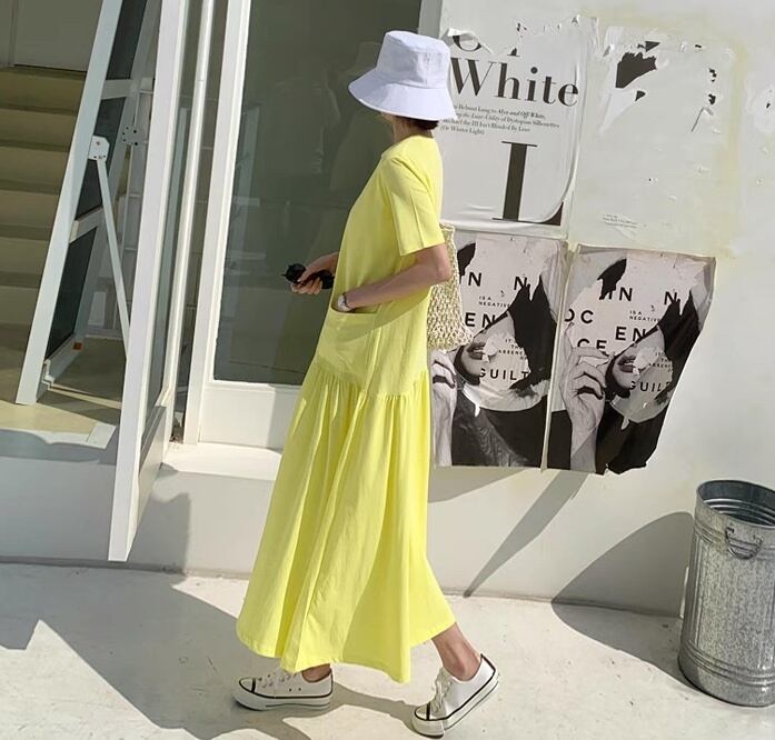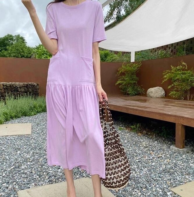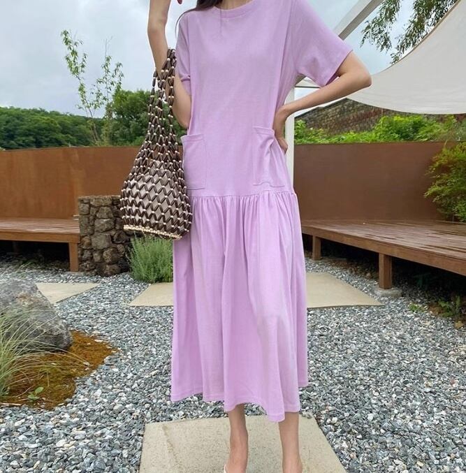 レディース ワンピース Tシャツ Tシャツワンピ ミモレ ロング 半袖 ラウンドネック フレア Aライン フェミニン ストリート ポケット かわいい 大人可愛い きれいめ シンプル カジュアル おしゃれ こなれ感 ラフ ガーリー ルーズ 抜け感 キュート ベーシック アクティブ ナチュラル 無地 夏 リゾート 旅行 休日 重ね着 楽ちん 体型カバー 普段使い 着回し レイヤード トレンド 流行 インスタ映え 定番 ゆったり ゆる フリーサイズ 白 ホワイト 黒 ブラック 紫 黄色 イエロー パープル