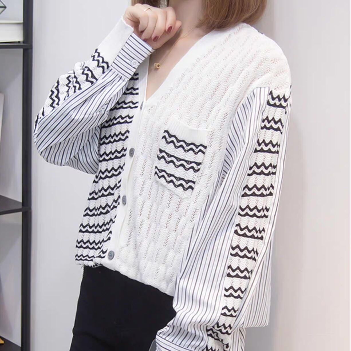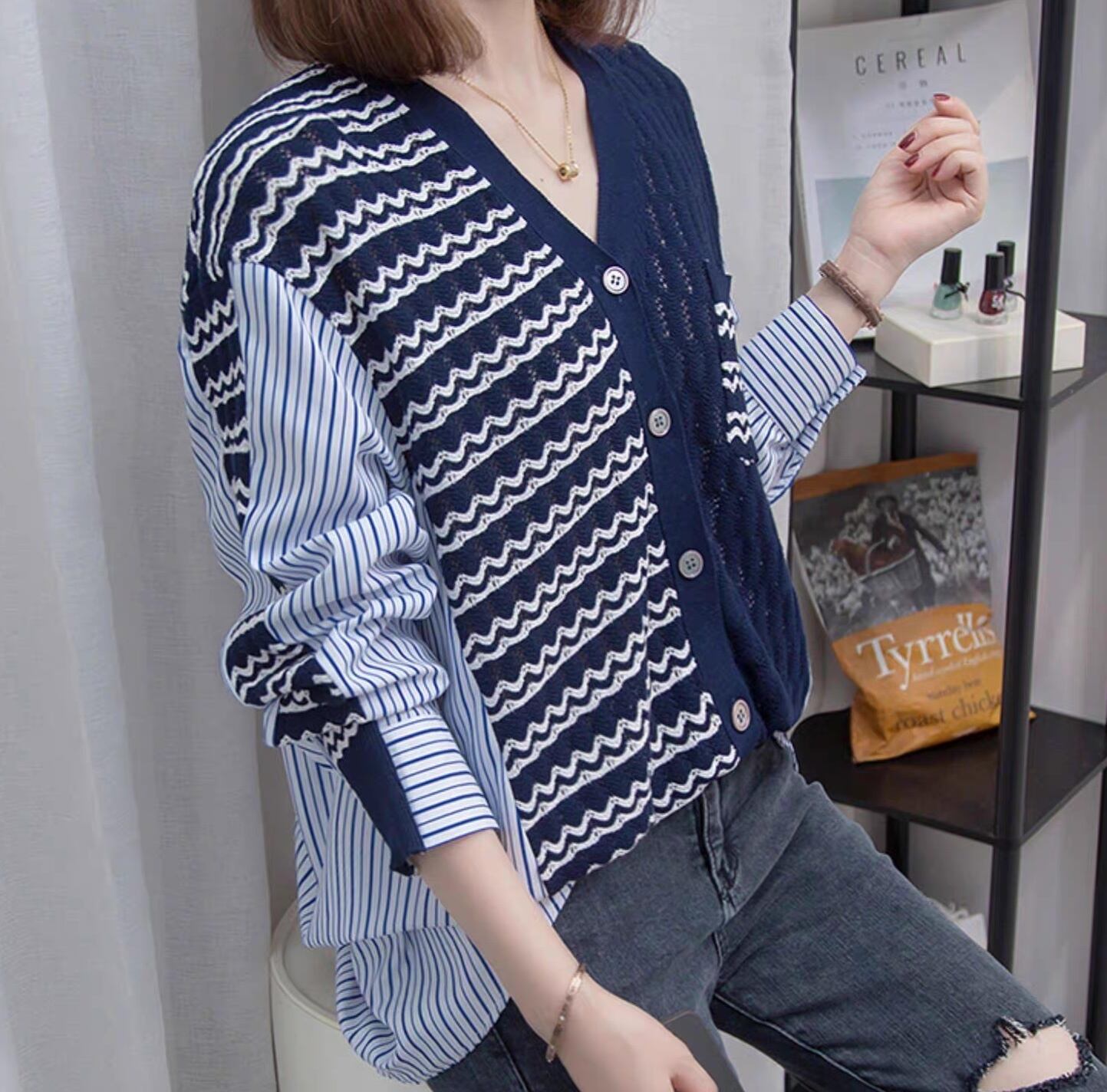 レディース トップス シャツ ブラウス カーディガン 長袖 Vネック アシンメトリー オーバーサイズ ポケット 前開き 透け感 シースルー 切り替えデザイン バイカラー 配色 ドッキング おしゃれ かっこいい こなれ感 ルーズ 個性的 存在感 キュート カレッジ風 学生風 アクティブ ナチュラル ボーダー ストライプ 学生 デート お出かけ 休日 ショッピング カフェ 重ね着 普段使い 着回し レイヤード トレンド 流行 インスタ映え S M L XL 小さいサイズ 大きいサイズ 白 ホワイト ブルー
