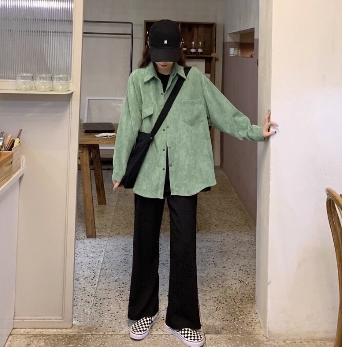 レトロな雰囲気漂うコーデュロイシャツは、ゆったりとしたシルエットが特徴です。