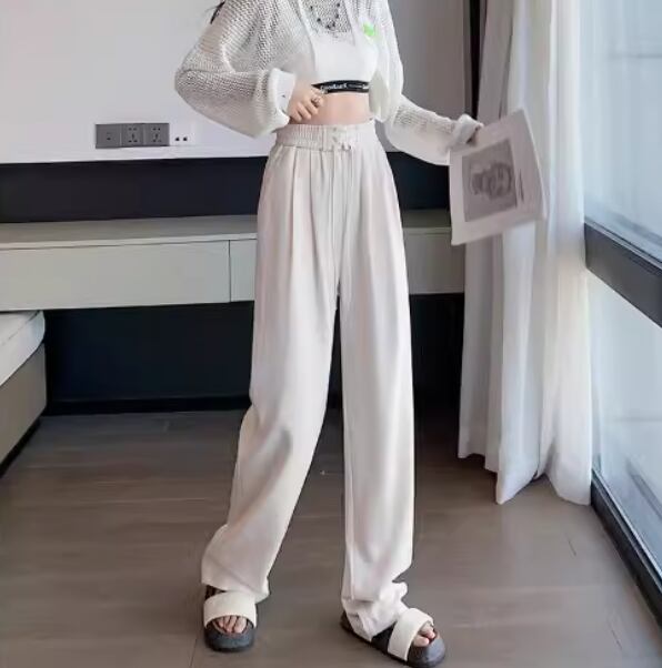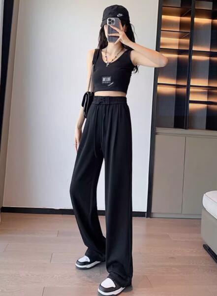 軽やかな履き心地と流行を取り入れたデザインが魅力のハイウエストスエットパンツ。
