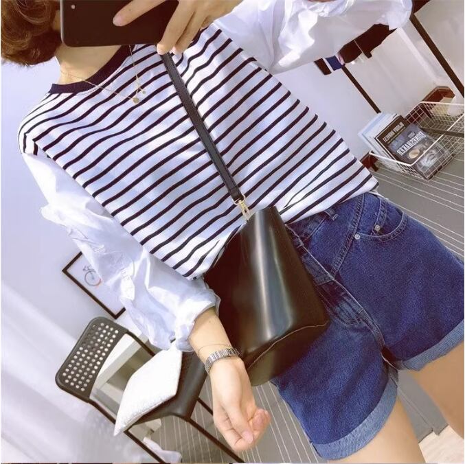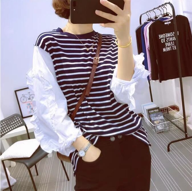 レディース トップス シャツ ブラウス カットソー スウェット 長袖 ボリューム袖 ドロップショルダー フリル袖 ラウンドネック 襟なし ノーカラー 切り替え ドッキング フリル 切り替えデザイン かわいい 大人可愛い シンプル カジュアル おしゃれ こなれ感 ラフ ガーリー 主役級 存在感 抜け感 キュート ボーダー 春 秋 デート お出かけ 旅行 公園 女子会 休日 ショッピング カフェ 韓国 オルチャン コーデ 体型カバー 普段使い 着回し S M L XL ゆったり 白 ホワイト 黒 ブラック