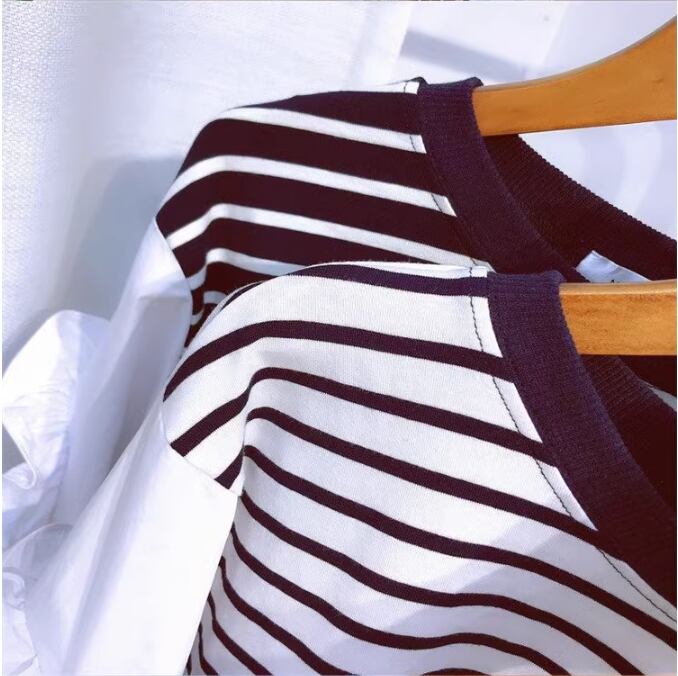 袖のフリルが大人可愛い七分袖ボーダープルオーバー。
