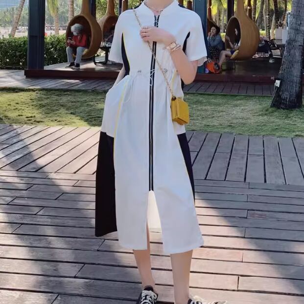 レディース スカート ワンピース つなぎ 前開き ロングスカート ミモレ 半袖 ラウンドネック Aライン ウエストマーク ファスナー ポケット ハイウエスト 薄手 かわいい 大人可愛い きれいめ シンプル カジュアル 上品 おしゃれ かっこいい レトロ ラフ スポーティー 個性的 主役級 存在感 抜け感 ラブリー キュート アクティブ 夏 デート お出かけ リゾート 旅行 海 公園 女子会 休日 ガーデン ショッピング カフェ コーデ 楽ちん 体型カバー 美脚 脚長 普段使い モテ インスタ映え ゆる