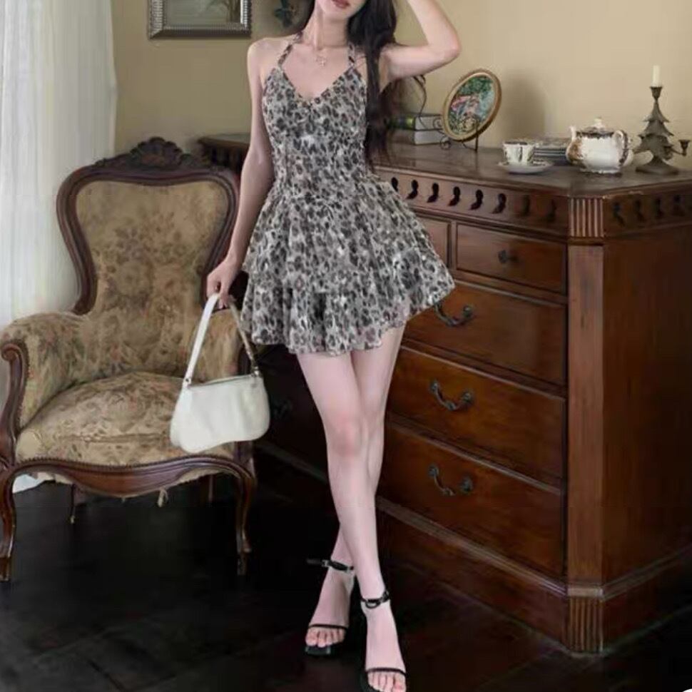 レディース スカート ワンピース ミニワンピ ドレス ワンピースドレス ミニ丈 ショート丈 袖なし Vネック ホルターネック ハンキングネック フレア Aライン 背中開き ティアード シフォン ハイウエスト 大人可愛い おしゃれ 個性的 主役級 存在感 キュート ギャル ヒョウ柄 レオパード 春 夏 デート お出かけ パーティー イベント 女子会 休日 ショッピング ライブ コスプレ 韓国 オルチャン コーデ 美脚 脚長 普段使い 着回し インスタ映え スタイル デイリー S M L XL ブラウン 茶色