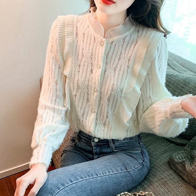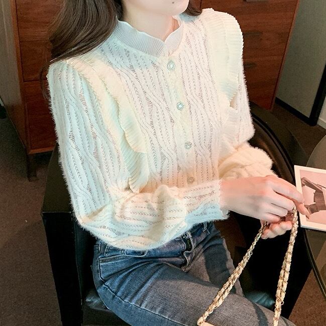 レディース トップス ブラウス ニット セーター カーディガン 長袖 ラウンドネック スタンドカラー フレア ドッキング フェミニン プリーツデザイン フリル ケーブルニット ボタン かわいい 甘め 大人可愛い きれいめ 上品 おしゃれ ガーリー キュート プリンセス 秋 冬 デート お出かけ 公園 女子会 休日 ショッピング カフェ 韓国 オルチャン コーデ コーディネート 暖かい 普段使い 着回し モテ 清楚 スタイル デイリー サイズ展開 S M L XL アプリコット オフホワイト 白 ホワイト