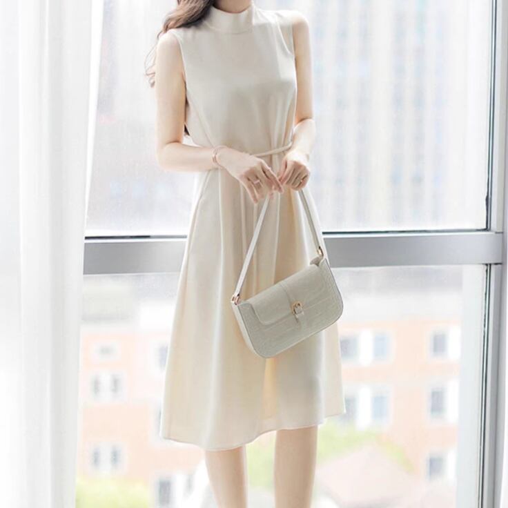 エレガントでモダンなノースリーブワンピース