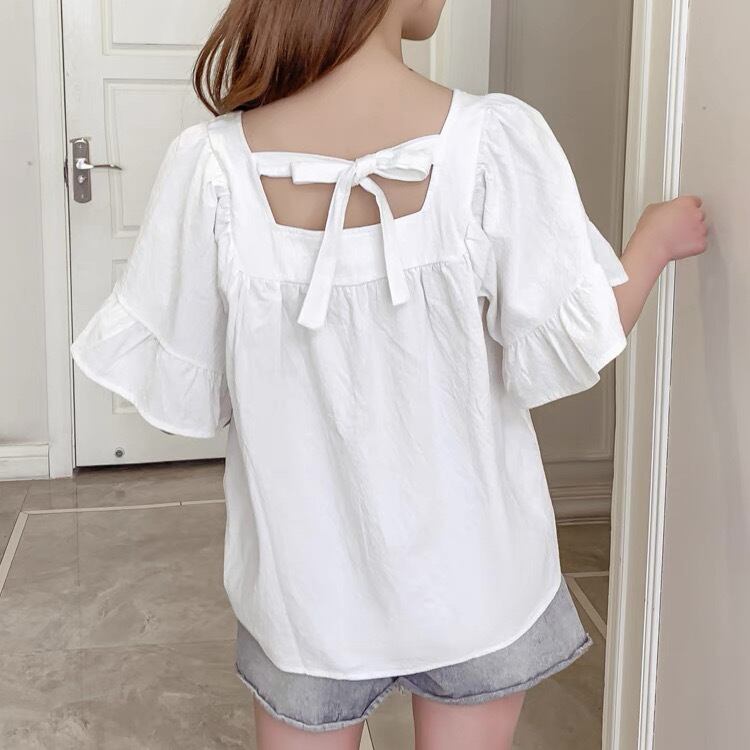 レディース トップス ブラウス プルオーバー Tシャツ 半袖 フリル袖 スクエアネック フレア フェミニン リボン バックリボン かわいい 大人可愛い シンプル カジュアル おしゃれ ガーリー ラブリー キュート ロマンティック 無地 春 夏 OL 通勤 学生 通学 デート お出かけ リゾート 公園 女子会 休日 ショッピング 合コン コンパ カフェ 韓国 オルチャン コーデ 体型カバー 普段使い 着回し モテ スタイル デイリー M L XL 2XL 大きいサイズ ゆったり ゆる 白 ホワイト レッド