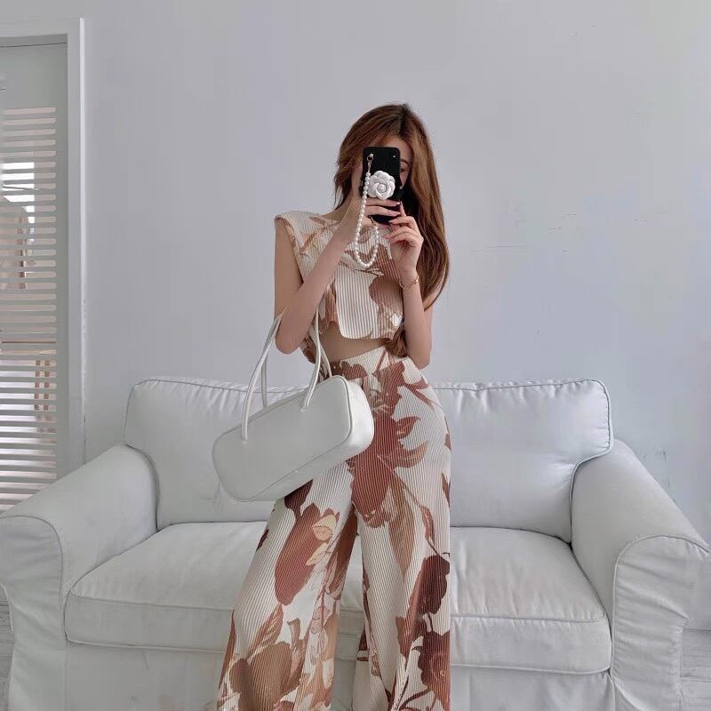夏のイベントや休日にぴったりな、レディーストップス&パンツのセットアップ。フェミニンなプリーツ入りトップスとハイウエストのストレートパンツで、清楚で上品なスタイルを演出。ウエストゴムで伸縮性も抜群で楽ちん。S、M、Lのサイズ展開で、大人可愛いからクールなスタイルまで叶える、個性的な存在感を放つアイテム。トレンド感溢れるボタニカル柄がインスタ映えもバッチリ。