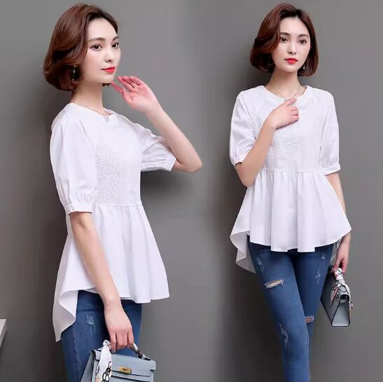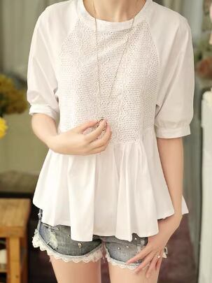 レディース トップス シャツ ブラウス ミディアム丈 5分袖 ラウンドネック フレア ペプラム フリル フェミニン タック レース 切り替えデザイン 薄手 大人可愛い カジュアル 上品 おしゃれ レトロ こなれ感 ラフ 主役級 存在感 クラシカル ロマンティック ナチュラル 夏 ママ OL 学生 デート お出かけ リゾート 旅行 女子会 休日 バカンス ガーデン ショッピング 合コン コンパ カフェ 体型カバー 普段使い 着回し 清楚 インスタ映え M L XL 2XL ホワイト