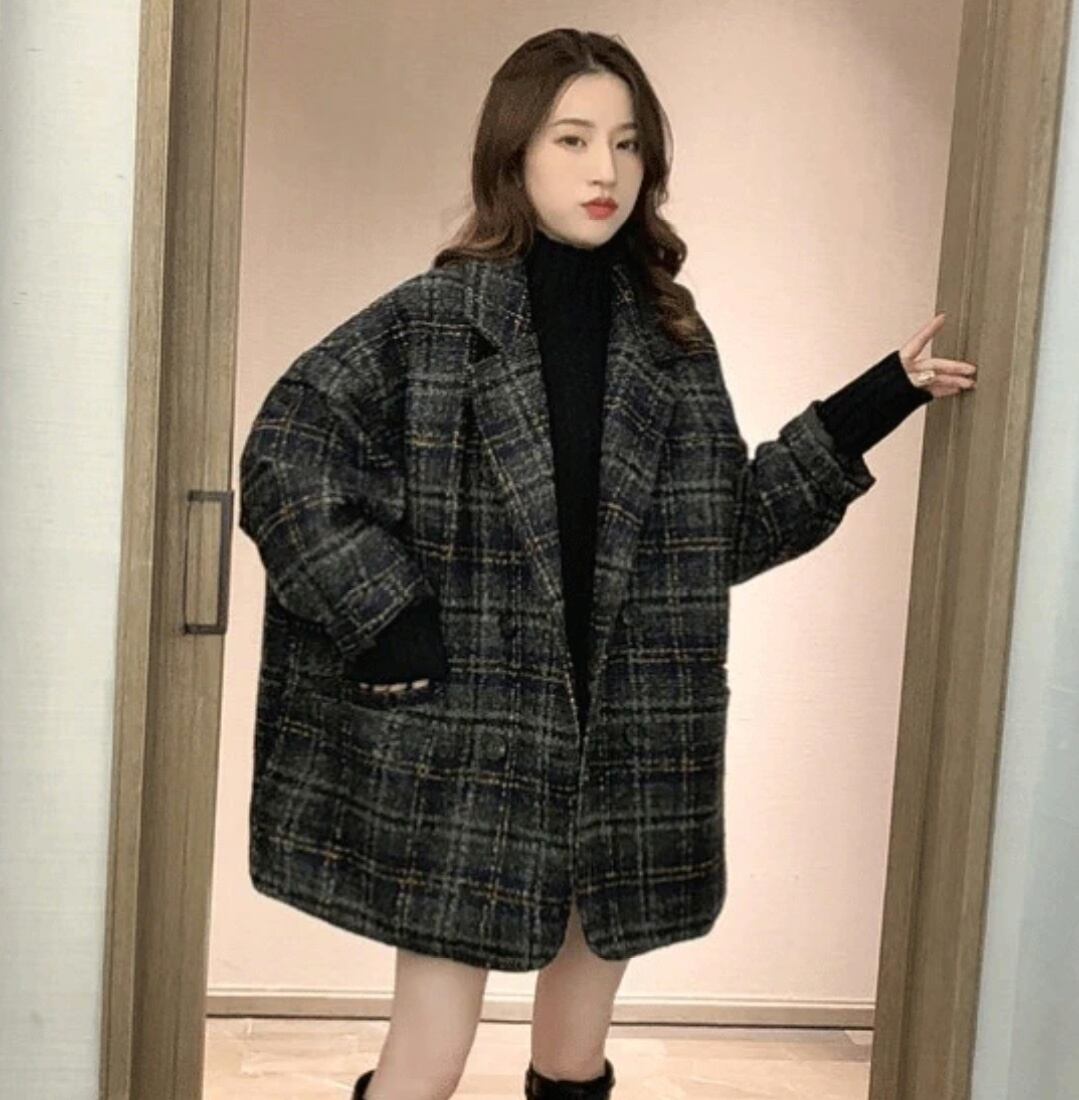 レディース コート アウター 上着 チェックコート レトロコート ミディアム 長袖 Vネック 襟付き 前開き ウール 大人可愛い かっこいい レトロ ラフ メンズライク マニッシュ ボーイッシュ アメリカン プレッピー カントリー アクティブ ナチュラル チェック 格子柄 秋 冬 デート お出かけ 休日 重ね着 楽ちん 暖かい 防寒 体型カバー 普段使い 着回し レイヤード トレンド 流行 インスタ映え L XL 2XL 3XL 4XL 大きいサイズ ビッグ ゆったり ゆる 黒 ブラック 茶色 ブラウン