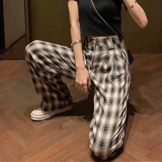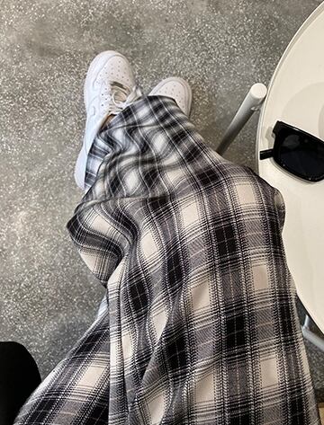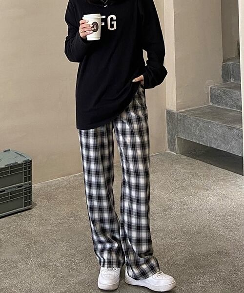 コーデに合わせやすいモノトーンカラーのチェック柄パンツです。