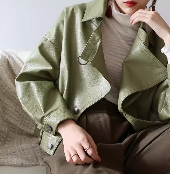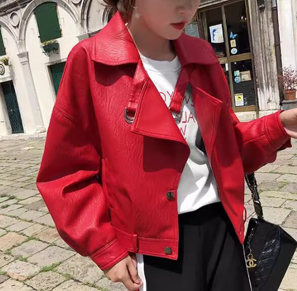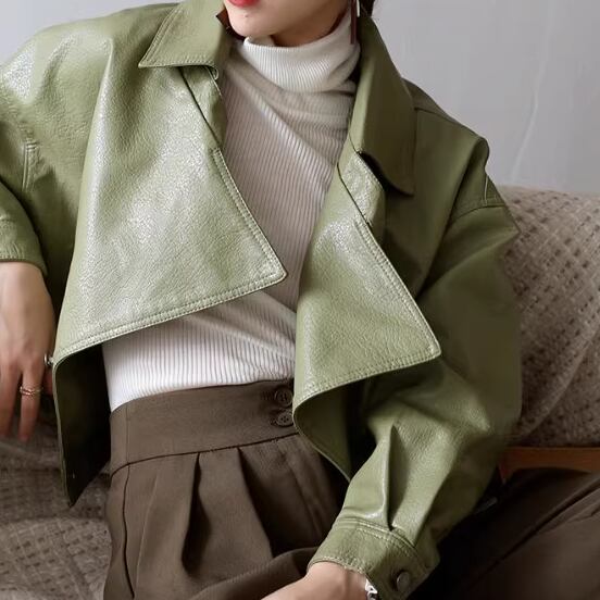 レディース ジャケット アウター 上着 レザージャケット ライダースジャケット ショート 長袖 ポケット ウォッシュ レザー PU 大人可愛い シンプル カジュアル おしゃれ かっこいい こなれ感 ボーイッシュ ルーズ 個性的 クール ラグジュアリー ワイルド ハンサム シック 高級感 スタイリッシュ 無地 春 秋 デート お出かけ 韓国 普段使い 着回し トレンド 流行 S M L ゆったり 大きめ ブラック オフホワイト レッド グリーン