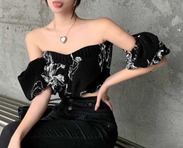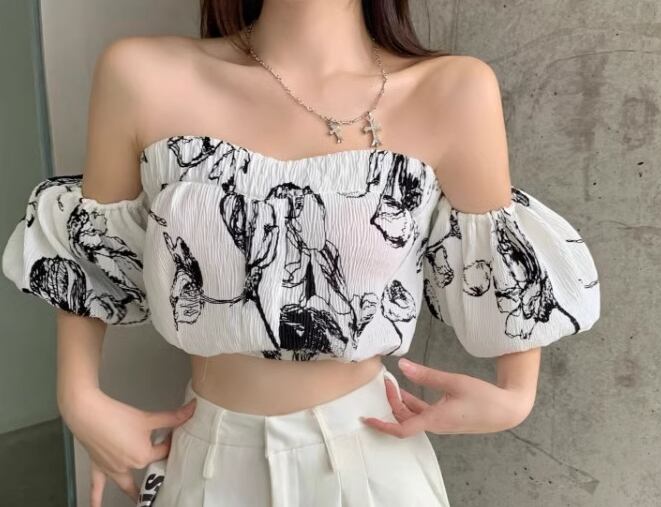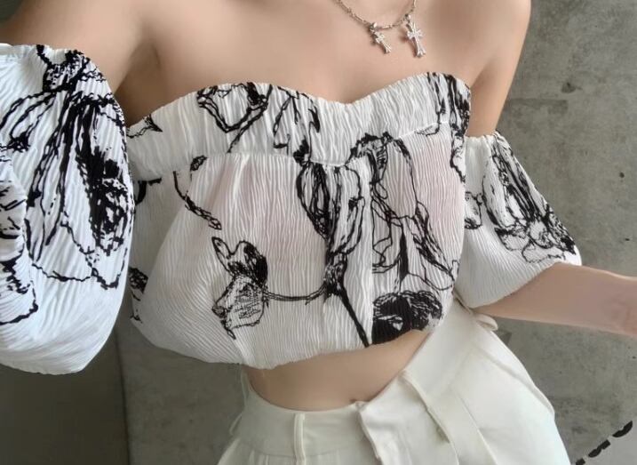 レディース トップス カットソー プルオーバー ショート クロップド丈 袖なし ノースリーブ 半袖 オフショルダー ストレッチ 伸縮性 大人可愛い カジュアル おしゃれ かっこいい こなれ感 ラフ 個性的 クール 存在感 抜け感 ラグジュアリー セクシー シック 高級感 芸術的 アーティスティック 華やか スタイリッシュ 花柄 フラワー ボタニカル プリント 夏 10代 20代 学生 デート お出かけ 普段使い 着回し トレンド 流行 フリーサイズ ホワイト ブラック